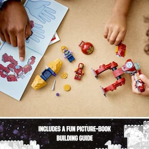 - Ação de batalha — O brinquedo Hulkbuster é totalmente portátil e inclui um assento para a minifigura do Homem de Ferro. A aeronave tem um disco de tiro acoplado e um assento para a minifigura de Thanos