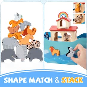 ?O que você ganha?Nossos brinquedos Noahs Ark para crianças pequenas vêm com uma construção sólida e incluem 22 peças de figuras de animais bem pintadas: leões * 2, zebras * 2, elefantes * 2, rinocerontes * 2, girafas * 2, crocodilos * 2, coelhos * 2, corvos * 2, pombas * 2, arco-íris * 1, escadas* 1 e um livro de histórias da Bíblia. As crianças reconhecerão formas, classificá-las e combinar os animais nas formas certas, empilhar blocos e mantê-los equilibrados também é um desafio. Os pais podem brincar com os filhos juntos, cantando a música da Arca, da Arca ou encenando a história da Arca de Noé! -?Brinquedo clássico da Arca de Noé?Inclui base em forma de barco, Noé, sua esposa e 22 peças de diferentes pares de animais de madeira, além de um livro bíblico com palavras detalhadas para contar a história do dilúvio. Perfeito para aulas em casa e estudo da Bíblia. -?Jogo de classificação?A parte de trás do navio tem alguns recortes de animais para que as crianças pratiquem a escolha do animal da forma certa e se concentrem em colocá-lo na ranhura correta. A porta de esquiva da arca de Noé se abre e a rampa de madeira é fixada ao casco, ficando estável contra a arca, para que as crianças possam caminhar sobre esses animais fofos em sua jornada. -?Seguro e durável?Nosso brinquedo Arca de Noé é totalmente feito de madeira natural real, sem nenhum material plástico. Superfície lisa e blocos pintados à base de água, dimensionados para bebês, que evitam riscos de asfixia. A cabine superior do barco pode ser facilmente retirada ou virada para que todas as peças possam ser armazenadas em seu interior. O belo design também faz da arca de Noé uma decoração para colocar em casa. -?Presentes cristãos para bebês?Vem em uma caixa bem embalada, todos os acessórios são embalados individualmente para evitar que os brinquedos de madeira sejam danificados. Uma ideia de presente de batismo para meninos e meninas com mais de 12 anos. Ótimos brinquedos da Arca de Noé para crianças de 1 a 3 anos e um brinquedo perfeito para adicionar ao berçário da igreja ou ao quarto de uma criança. -?Aprendendo brincando?Os brinquedos de madeira Noah's Ark proporcionarão ao seu filho diversão infinita de imaginação e criatividade. Enquanto isso, ajude-os a praticar a coordenação olho-mão e as habilidades motoras finas. Nosso brinquedo da arca de Noé será uma boa adição para ajudar a ensinar a história de Noé quando o bebê crescer.