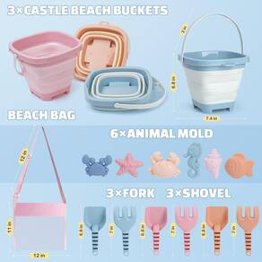 Dreamon O conjunto de brinquedos de praia é projetado para o verão na praia. O brinquedo de areia dobrável tem muitas ferramentas e formas de criatura, incluindo 3 balde dobrável, 3 pás de areia, 3 ancinhos de areia, 3 sacos de meash e 6 moldes de praia fofos e vívidos. Divirta-se na praia de verão e desfrute de um momento feliz ao ar livre com seu filho! - [Brinquedos de praia para crianças] O conjunto de brinquedos de areia dobráveis inclui 3 balde de praia dobrável, pás de areia e ancinhos de areia (cada 3), 6 moldes de praia de criaturas aquáticas e uma bolsa de malha para armazenar todos os brinquedos de areia para crianças. - [Fácil de transportar e armazenar] O design de balde dobrável portátil e leve é mais conveniente para carregar e armazenar, adequado para as crianças aproveitarem o verão ao ar livre, viagens na praia. A bolsa de praia de malha é suportada para conter todos os moldes de areia e é fácil sacudir a areia e a água. - [Material seguro e durável] Feito de material de alta qualidade, o brinquedo de areia infantil é projetado com bordas lisas, macio e seguro. A qualidade do balde de areia dobrável é resistente e fácil de limpar, pode ser utilizado repetidamente por um longo tempo. - [Brinquedo criativo de castelo de areia] Brinquedos de praia multicoloridos incentivam as crianças a criar diferentes castelos de areia, criaturas fofas e vívidas cultivam a capacidade e a imaginação das crianças, proporcionam horas de diversão para você e seus filhos. - [Aproveite várias diversões] Este conjunto de brinquedos de areia dobráveis não é apenas para crianças em viagens na praia, também é ótimo brinquedo de caixa de areia para crianças de 3 a 10 anos. É adequado para muitos jogos ao ar livre e interno, as crianças podem brincar na praia, piscina, jardim, quintal e também no dia a dia como armazenamento em contêineres.
