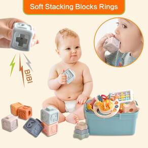 Brinquedo de bebê 6 em 1 Defina seu bebê menino ou menina para desenvolver naturalmente suas habilidades de resolução de problemas e habilidades cognitivas desde tenra idade? Acreditamos que os bebês podem crescer e aprender brincando. Conjunto de brinquedos 6 em 1 para inúmeras horas de diversão - ?Conjunto de brinquedos macios 6 em 1? O conjunto de brinquedos infantis contém 6 blocos macios de cubos empilhados digitais, 6 anéis macios de empilhamento, 1 brinquedo de corda de puxar, 6 bolas de brinquedo sensoriais e de aperto, 1 brinquedo coala e uma caixa sensorial de 6 brinquedos de chocalho. Equipado com uma caixa de armazenamento de grande capacidade, para que as crianças possam ser armazenadas e separadas após o uso - ?Montessori Developmental EducationToy?Os brinquedos são impressos com números, incentivando o toque e a exploração visual enquanto auxiliam no desenvolvimento cognitivo. Os brinquedos infantis de 6 a 9 a 12 a 18 meses são ótimos para aprender cores, formas, texturas, contar e aprender conceitos de desenvolvimento como equilíbrio, coordenação motora fina, coordenação olho-mão, capacidade cognitiva e capacidade de resolução de problemas! - ?Diversos brinquedos de empilhamento sensorial? Estes blocos de construção para bebês conectados, com diferentes padrões de relevo em cada lado, como algarismos arábicos, animais, letras, padrões geométricos e gráficos. Eles vão fazer um barulho quando você aperta o brinquedo macio e interativo do bebê, as crianças podem observar esses padrões através da visão e do toque, o que contribui para o desenvolvimento intelectual, capacidade de raciocínio e habilidade prática - ?Brinquedos sensoriais seguros para dentição?O material de alta qualidade torna o produto durável e seguro. O bebê explore este adorável brinquedo de corda de puxar em forma de urso marrom puxando para cima e para baixo, pressionando, mastigando, sacudindo, 6 blocos coloridos com diferentes texturas. Nossos brinquedos montessori são super macios para ajudar seus bebês enquanto eles estão dentição. Cada um deles tem um pequeno orifício, a dentição do bebê e aprecia o barulho estridente mordendo-os, ótimos brinquedos sensoriais para mastigar e empilhar brinquedos para crianças de 1 a 2 anos - ?Presente perfeito para seus filhos?Os brinquedos para bebês de 6-9-12-18 meses são embalados em uma caixa de armazenamento conveniente que você pode levar com você aonde quer que vá. Perfeito para presentes de aniversário do bebê/Dia das Crianças/Natal/Ação de Graças/Ano Novo. Recomenda-se limpar com água de alta temperatura ao usar e espremer a água até evaporar completamente.