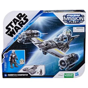 - STAR WARS ACTION FIGURE: The Mandalorian em escala de 2,5 polegadas O boneco Wars apresenta vários pontos de articulação, além de design e detalhes inspirados na série de ação ao vivo The Mandalorian no Disney+ - ACESSÓRIOS DE BONECOS DE AÇÃO: este O playset Mission Fleet Star Wars também vem com um acessório Darksaber e uma figura de Grogu, carinhosamente chamada de “Baby Yoda” pelos fãs