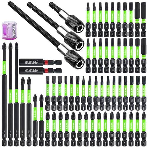 - conjuntos de brocas de chave de fenda longa, conjunto de brocas de fósforo preto de fósforo verde PH PZ TORX R SL com haste hexagonal, haste de extensão magnética forte, anel magnético, caixa de presente