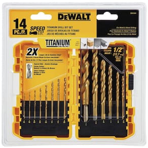 DEWALT DW1341 Conjunto de brocas de ponta de nitreto de titânio de 14 peças - A ponta de velocidade reduz a caminhada - Ideal para perfuração em metal, madeira e plásticos - Sem hastes giratórias - Inclui recipiente resistente para manter os bits organizados - Revestimento de nitreto de titânio para maior vida útil