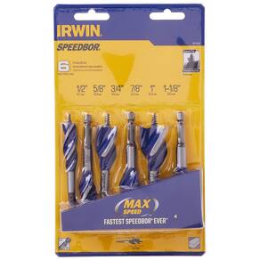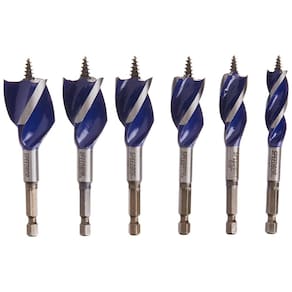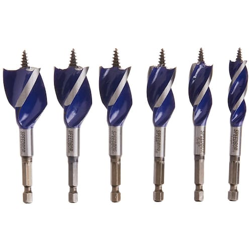 Irwin Conjunto de brocas Tools IRWIN SPEEDBOR para madeira, 10 cm, 6 peças (1877239) - Três esporas de corte para furos mais rápidos e limpos, menos fuga e vida útil prolongada da perfuração - A ponta completa do ponto de parafuso permite que a broca se alimente para facilitar a perfuração - Comprimento total mais curto para perfuração em espaços apertados. Ideal para furos de até 5 cm de profundidade - A haste de mudança rápida de 0,63 cm reduz o deslizamento nos mandris padrão e é compatível com todos os mandris de troca rápida de 0,64 cm, incluindo brocas de impacto