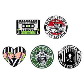 Material: liga Tamanho: 3 x 1,9 cm Peso: 38 g Quantidade: você receberá todas as peças em quantidade igual à primeira foto principal. Conjunto de inspiração gótica do Show — Inclui 5 broches esmaltados com coração listrado, fita cassete, emblema de tubarão, círculo de café e crachá de texto criativo. Acabamento em liga e esmalte — Feito de liga de alta qualidade com cores brilhantes de esmalte, oferecendo durabilidade, conforto leve e brilho duradouro. Emblemas de lapela — Funcionam como alfinetes de blusa, enfeites de lapela ou emblemas para jaquetas, camisas, chapéus e mochilas escolares. Estética escura — tema listrado em preto e branco combinado com gráficos ousados, perfeito para estudantes, adolescentes e amantes da moda retrô. E leve — Cada peça mede 3x1,9 cm com peso total de 38g, fácil de usar, transportar e combinar com vários estilos.