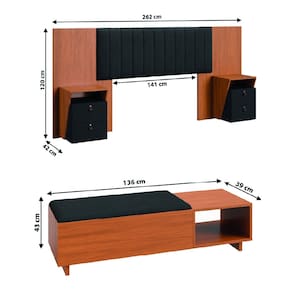 MODELO: Conjunto de Cabeceira Extensível com 2 Mesas e Calçadeira Veludo Malaga
