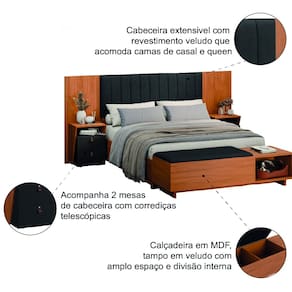 A Dobuê oferece o conjunto perfeito para o seu quarto: a Cabeceira Extensível e a Calçadeira Malaga. Com design sofisticado e materiais de alta qualidade, esse conjunto é ideal para camas de Casal e Queen ideal para diferentes tamanhos de quarto. A cabeceira possui 2 mesas laterais com gavetas equipadas com corrediças telescópicas e seu revestimento é em veludo para maior conforto. A calçadeira é espaçosa e possui divisão interna para manter seus pertences organizados. Com o conjunto Malaga, você terá um quarto mais bonito, funcional e aconchegante. Surpreenda-se com o design, inovação, beleza e durabilidade desse conjunto!