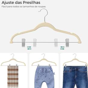 Com uma estrutura robusta e presilha de metal, suas roupas ficarão sempre no lugar, sem amassar ou cair. Além disso, o revestimento aveludado confere um toque de sofisticação na sua organização.