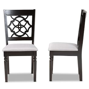 — O design elegante combina artesanato de qualidade na cadeira de jantar Renaud. Feito na Malásia, o Renaud é construído em madeira maciça e apresenta um rico acabamento marrom escuro que complementa o estofamento em tecido cinza. O amplo conforto gastronômico é proporcionado pelo assento macio e acolchoado de espuma. Exigindo montagem, a parte traseira apresenta um design recortado exclusivo que permite que a luz flua, proporcionando uma sensação mais aberta em espaços apertados.