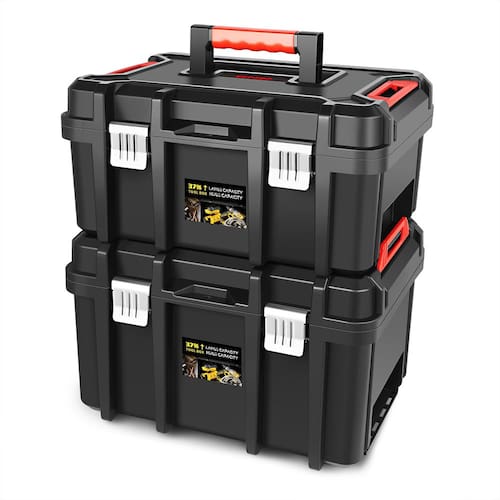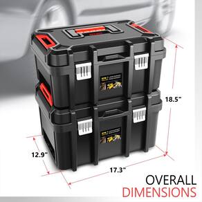 Conjunto de 2 caixas de ferramentas DNA MOTORING – Caixa de ferramentas portátil com organizador bloqueável com bandeja removível para oficina, garagem e casa, grande capacidade, TOOLS-00310 - Conjunto de caixa de ferramentas 2 em 1 – consiste em 2 caixas de ferramentas separadas que podem ser usadas individualmente ou combinadas em uma unidade, perfeitas para bancadas de trabalho, garagens, porta-malas de carro e muito mais. Tamanho total: 43 cm C x 32 cm L x 46 cm A - Amplo espaço de armazenamento – a bandeja de utilidade interna removível permite que você armazene chaves, soquetes, chaves de fenda e assim por diante. O compartimento inferior de volume extra grande pode armazenar itens grandes e pesados. - Design de fivela de trava dupla – A caixa de armazenamento de ferramentas com trava vem com 2 travas de aço inoxidável, não é fácil de deformar, o orifício do cadeado pode ser travado para garantir a segurança. - Durável e portátil – O organizador da caixa de ferramentas é feito de plástico rígido robusto de alta qualidade. Com alça antiderrapante inserida para facilitar o transporte; alça bi-material embutida para portabilidade fácil e estável. - Amplas aplicações – este conjunto de caixas de ferramentas multiuso também é perfeito para uso doméstico, trabalho DIY, artesanato e armazenamento de hobby, que é leve para carregar.