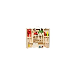 Caja HerramientasJogo didático de madeira. Fantástica caixa de ferramentas (maletín) com cajones para armazenamento. Inclui: Caixa contenedora.CajonessierraRegladestornilladorMazo madera, entre otras piezas.Medidas: 31 cm x 21 cm x 9 cmRecomendável para crianças maiores de 3 anos.