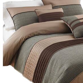 Conjunto de edredom Queen Benjara de 7 peças com pregas e textura, cinza e marrom
