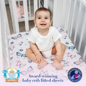 My Little Zone - O conjunto de cama de berço borboleta é projetado na França com lindas borboletas rosa e azuis e flores brancas espalhadas em um padrão de fundo rosa. Com seu charmoso tema de flor, é perfeito para qualquer berçário de menina e decoração de berçário rosa. O conjunto de cama de berço de borboleta de 5 peças inclui 2 lençóis de berço (71 x 132 cm com um bolso profundo de 20 cm), um cobertor de borboleta para meninas (107 x 83 cm), uma saia de berço (33 cm de comprimento) e decalque de parede de borboleta (170 x 90 cm), que é um adesivos de parede perfeitos para meninas quarto. Cada peça do nosso conjunto de cama de berçário para meninas é feita de algodão de alta qualidade para garantir um ambiente de sono confortável e saudável para o berçário. Ao contrário das fibras sintéticas que retêm o calor e a umidade, o algodão respira bem e ajuda a regular a temperatura, garantindo que seu bebê permaneça aconchegante sem superaquecimento dentro dos cobertores de bebê para meninas e lençóis de berço. Em nossos conjuntos de berço para meninas, cada um dos dois lençóis de berço para meninas, um adornado com um padrão de borboleta e o outro com um padrão floral, é feito de algodão de alta qualidade. Estes lençóis de berço para meninas garantem um ajuste seguro em um colchão de berço de tamanho padrão com seu elástico premium, oferecendo elasticidade extra em toda a volta. A saia de berço rosa com babados e o charmoso decalque de parede de borboleta complementam perfeitamente o visual da decoração da parede do seu bebê. Complete o visual do quarto do seu bebê com este conjunto de cama de berço de borboleta elegante e bem embalado para meninas, que também é um presente atencioso para decorações de chá de bebê, aniversários e feriados. Melhore o ambiente geral do berçário de bebês combinando com outras coisas de borboleta da Butterfly Bedding Collection, como cestas de armazenamento para crianças ou capas de trocador de borboletas que complementam perfeitamente este conjunto de cama de berçário. - MATERIAL: Nosso conjunto de cama para berço é feito de algodão qualificado que oferece tecido respirável e absorvente. Este material premium garante um ambiente de sono saudável no conjunto de cama de bebê para meninas e meninos. - Fácil de cuidar: o conjunto de cama de berço borboleta para meninas é lavável na máquina e durável. Este conjunto de cama de berço branco e rosa para meninas é projetado para suportar sem desbotar a cor com lavagens regulares. - Tamanho: o conjunto de edredom de berço de ajuste aprimorado para meninas é compatível com berços de 132 x 71 cm, como Essex, Heartland, Graco, Emery, Chelsea Bellport e muito mais. - Projetado na França: Conjunto de cama de berço de borboleta para meninas projetado com um tema de flor branco-rosa. Este conjunto de berço é um dos melhores presentes para chá de bebê, revelação de gênero e muito mais. - O pacote inclui: O conjunto de cama de berço borboleta para meninas é bem embalado com uma bolsa de PVC de alta qualidade, que inclui 5 peças: 2 lençóis de berço (71 x 132 cm com um bolso profundo de 20 cm), um cobertor de bebê menina (106,7 x 83,8 cm), saia de berço rosa (33 cm de comprimento) e decalque de parede de borboleta (170 cm). 2 cm x 90 cm 2 cm).