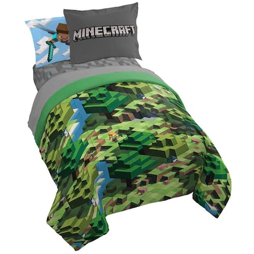 Create an exciting new look for any kid's room with this Minecraft Daytime bed-in-a-bag bedding set. This bold and colorful 7 piece bed set will dress up any bedroom décor. Kids will be excited to jump into bed with this super soft bed set featuring their favorite characters Alex and Steve from the popular video game. 100% polyester with comfy warm polyester fill. The comforter is soft and comfortable. Complete bedding ensemble includes full comforter, fitted sheet, flat sheet, two 20" x 30" standard pillow case, and two bonus pillow shams. Easy care, machine wash cold, tumble dry low. Imported. - Ajuste perfeito e design divertido – Este conjunto de cama completo Minecraft inclui (1) edredom completo de 193 x 218 cm, (1) lençol de elástico 137 x 190 cm, (1) lençol liso 205 x 243 cm, (2) fronhas padrão 50 x 76 cm. 2.33L ) Capas de 51 x 66 cm. Adicione um toque de encanto decorativo ao seu quarto com nosso conjunto de cama Minecraft legal e super macio. - Alta qualidade e ótimo valor – Mantenha seu pequeno o mais confortável possível! O conjunto de cama Minecraft é super macio e ótimo para todas as estações. 100% microfibra de poliéster escovado permite uma noite de sono confortável. Resistente ao desbotamento e lavável na máquina. Para limpar, lavar à máquina a frio. Secar ao ar livre/secar em temperatura baixa. - Ótimo presente – Esta cama completa Minecraft em uma bolsa fará qualquer criança sorrir e transformará qualquer quarto, quarto de hóspedes, quarto das crianças, trailer ou casa de férias. Ótimo presente para escola ou casa. Enrola para facilitar o armazenamento e a viagem. O design divertido e colorido apresenta os personagens favoritos do seu filho Alex e Steve do popular videogame. - Compre a coleção Minecraft – Complete seu quarto com nossos outros produtos Minecraft – Roupa de cama e acessórios coordenados disponíveis (vendidos separadamente). - Nossa empresa familiar – Nossa empresa ainda é pequena e tem uma experiência familiar. Temos muito orgulho de nossos produtos e nosso atendimento ao cliente insuperável. Sabemos que nossos maravilhosos clientes são a razão pela qual estamos no negócio! Oferecemos produtos não tóxicos de excelente qualidade. Com nossos acessórios de Minecraft, você pode misturar e combinar nossos conjuntos de edredom de alta qualidade e exclusivos para meninos, conjuntos de edredom para meninas, conjuntos de lençóis infantis ou travesseiros infantis.