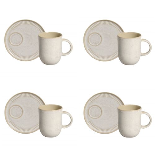 4 Canecas com Pires - 330 ml em 10,5 cm de altura e 8,3 cm de diâmetro