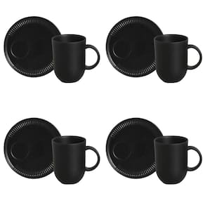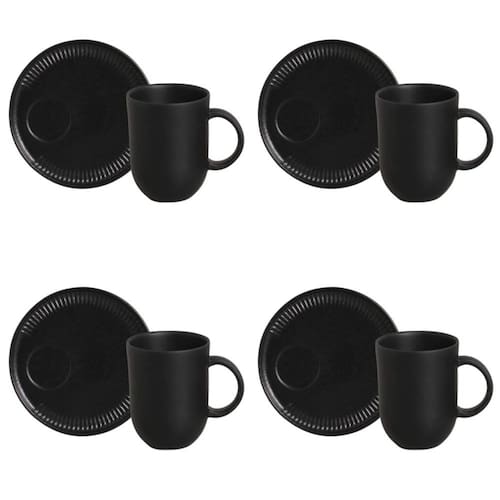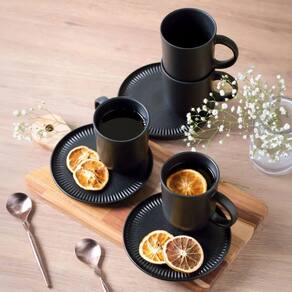 Conjunto de Canecas com Pires 04 Peças Linhas Preto Matte Porto Brasil - Incluso