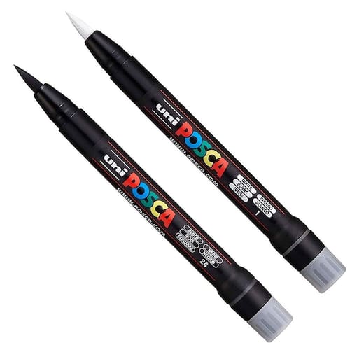 - Versátil — os marcadores de tinta Posca foram testados profissionalmente e utilizados em mais de 50 tipos de superfície diferentes, o que significa que você está coberto, independentemente de usar tela, tecido, acrílico, metal, prancha de surfe, pedras, pára-brisas ou qualquer outra coisa