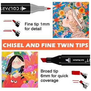 Marcadores de álcool de pontas duplas O design de marcadores de arte de pontas duplas permite que você faça linhas grossas e finas sem alterar os marcadores. Inclui pontas duplas de ponta fina de e ponta larga de para realce, esboço e sublinhado precisos. Marcadores finos podem ser s para escrever e prender linhas, enquanto marcadores de arte grossos profissionais são adequados para desenhar e colorir.