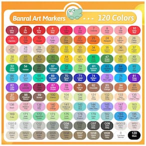 MARCADORES DE PONTA DUPLA Conjunto de marcadores de arte Banral 120 cores, cinzel largo aprox. 2 e pontas de ponta fina aprox. para realce e sublinhado precisos. Permitindo escrever em linhas finas e grossas, proporcionando grande versatilidade e mergulhando na arte. NOTA: Por serem marcadores à base de álcool como todos os outros marcadores de marca, eles sangrarão em papel colorido normal, exceto papel muito grosso, papel marcador.