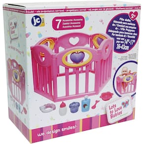 Para Keeps! Os acessórios playtime projetados pela JC Toys tornarão seu Berçário Dolly Incrível! Mantenha o bebê inalado e seguro em sua caneta de jogo ajustável. Inclui acessórios para a hora de jogo! Possui vários painéis que podem ser ajustados a diferentes formas e tamanhos. É o acessório perfeito para todas as suas bonecas JC Toys! Não inclui Doll. Este Brinquedo é seguro para todas as mães de bonecas e papais 2+. A JC Toys atende e excede todos os requisitos de segurança de brinquedos. Peça este lindo acessório de boneca para seu filho hoje!