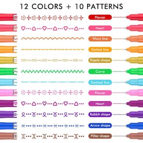 As canetas marcadoras de curvas AOROKI contêm 10 formas de padrão exclusivas em flor/coração/linha ondulada/linha pontilhada/forma ondulada/linha curva/linha tracejada/forma de coelho/forma de seta/forma de pilar, que adicionam mais criatividade e diversão ao marcar.