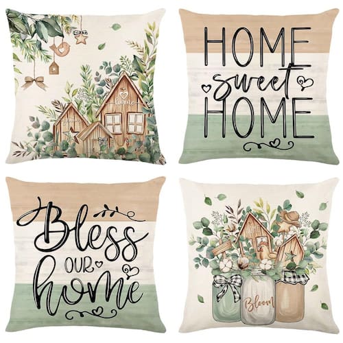 Conjunto de 4 fronhas de almofada de primavera 50 x 50 cm, xadrez colorido Bless Our Sweet Home Cottage primavera verão decorações sazonais capa de almofada para sofá sofá sala de estar - Durável e de alta qualidade: feita de poliéster lavável na máquina, toque confortável e macio, sem sangramento, desbotamento ou desgaste. - O PACOTE INCLUI: Conjunto de 4 fronhas para enchimento de 50,8 x 50,8 cm, OBSERVAÇÃO: Sem enchimento ou enchimento. A estampa é apenas na frente e sem impressão na parte de trás. - Fácil de colocar: Fecho de zíper invisível/oculto coordenado por cores para um visual elegante, super fácil de colocar seu travesseiro/enchimento nesta capa. - Dicas de lavagem: Lavar à máquina em água fria separadamente, ciclo suave apenas, não usar alvejante. - ÓTIMA PARA DECORAÇÃO DE CASA: Sensação ultra suave, traz um visual acolhedor e moderno para a decoração da sua casa, salas de estar, roupa de cama, sofá, sofá, jogar, cadeira, quartos, escritórios, etc