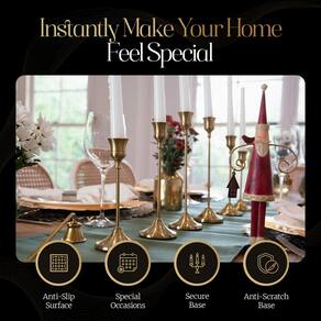 - Feitos em metal dourado escovado com base resistente e superfície antiderrapante, esses castiçais de latão garantem estabilidade e estilo - a decoração ideal para castiçais para qualquer ocasião, de jantares íntimos a celebrações festivas.