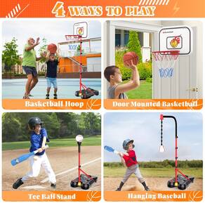 Toycost O conjunto de cesta de basquete infantil 4 em 1 e bola T é o melhor conjunto para meninos e meninas de 3 a 8 anos de idade. Projetado para versatilidade, possui uma cesta de basquete infantil, camiseta pendurada para beisebol, opção de basquete e uma configuração de bola em T, oferecendo várias maneiras de jogar. Seja em ambientes internos ou externos, as crianças podem desfrutar de atividades divertidas que desenvolvem habilidades essenciais, como coordenação olho-mão e habilidades motoras. - Brinquedos esportivos versáteis 4 em 1: 1. cesta de basquete de altura ajustável para crianças com 2 mini bolas de basquete e uma bomba, 2. bola de basquete montada na porta, pendure facilmente em qualquer porta de tamanho comum. 3. Conjunto de bolas para crianças de 3 a 5 anos, suporte de bola T com taco de beisebol e 4 bolas de beisebol. 4. Pendurar na altura certa como equipamento de treinamento de beisebol, ótimo para iniciantes praticarem. - Alturas ajustáveis para crianças em crescimento: a cesta de basquete infantil Toycost pode ser ajustada com opções de altura de 117 cm e de 128 cm a 192 cm. Se você escolher o modo beisebol, a altura será de 96 cm e de 113 a 184 cm. A cesta de basquete infantil interna é ideal para crianças de 3 a 8 anos. Fácil de montar com haste de ferro com número ordinal marcado, seus filhos são capazes de ajustar a altura sozinhos. O basquete infantil cresce com seu filho, ajudando-o a desenvolver coordenação motora e habilidades esportivas em todas as etapas. - Design estável e resistente: a cesta de basquete Toddle é feita de ferro espesso e material plástico sem bordas afiadas. A base de plástico estável pode ser preenchida com água ou areia, combinada com suporte triangular de ferro, reduz a agitação, garantindo uma brincadeira segura. O design da ranhura da base torna a cesta de basquete infantil conveniente para armazenar basquete quando não estiver em uso. - Estimule o jogo ativo e o desenvolvimento de habilidades: presentes de cesta de basquete Toycost para meninos de 4 anos e conjuntos de bolas para crianças de 3 a 5 anos promovem a coordenação, fortalecem a força e melhoram as habilidades motoras. A cesta de basquete infantil é a maneira fantástica de as crianças permanecerem ativas, desenvolverem habilidades de basquete e trabalho em equipe e desfrutarem de horas de brincadeiras saudáveis e envolventes, despertando um interesse precoce por esportes. - Perfeito para diversão em família e escolha de presente: a cesta de basquete interna é um divertido jogo esportivo interativo entre pais e filhos, fortalece as relações familiares enquanto cria memórias inesquecíveis. Caixa de embalagem com alça, leve facilmente este brinquedo infantil ao ar livre para quintal, porão, parque ou festa. Estes brinquedos para brincar ao ar livre serão uma grande surpresa para meninos e meninas de 3 a 8 anos. Ótimo para dias chuvosos em ambientes internos ou ensolarados ao ar livre. Excelente presente para aniversários, Natal, Ação de Graças, Ano Novo ou qualquer ocasião especial!