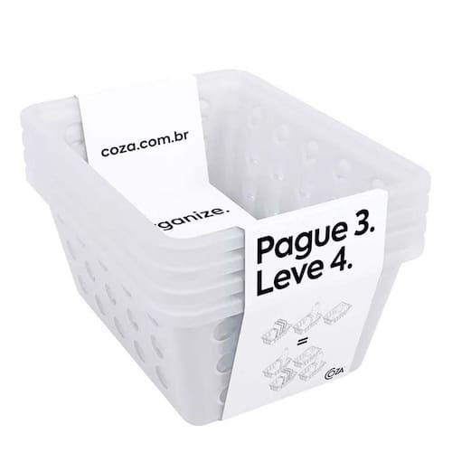 Práticas e versáteis, as Cestas One podem ser usadas para organizar e armazenar os mais diferentes objetos em qualquer ambiente da casa. As cestas organizadoras têm um design que permite a visualização de tudo o que está dentro delas, facilitando na hora de procurar o que está guardado em seu interior. A cesta organizadora é perfeita para armazenar itens de higiene pessoal, material de escritório, acessórios no quarto, itens na cozinha e muitas outras possibilidades. Cada cesta do Kit possui 18 x 6 x 14,2 cm de dimensões e são desenvolvidas em plástico polipropileno. Na discreta cor Natural, as cestas combinam com diversos elementos em tons pastéis no ambiente. Com o Kit de 4 unidades você organiza tudo com harmonia, praticidade e economia.