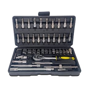 Potencialize sua eficiência em trabalhos variados com o Conjunto de Chave Catraca Profissional de 46 peças. Essencial para tarefas precisas, o conjunto oferece ferramentas robustas e versáteis. A caixa de ferramentas inclusa facilita o transporte, abrigando mangas de chave de fenda, soquetes hexagonais, padrão e cruz, junta universal, chaves Allen, haste curta-circuito, poste, coluna elástica, chave de catraca, haste quadrada, controle deslizante e conector de cabeça de broca. Este conjunto completo atende às demandas de profissionais que buscam praticidade e qualidade, proporcionando um kit abrangente para suas necessidades.