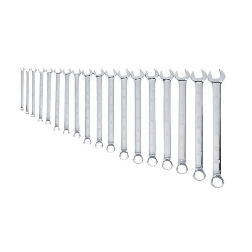 DEWALT Conjunto de chaves combinadas, MM, 18 peças (DWMT19237) - O padrão de hashmark estampado na alça da chave oferece pontos de aderência adicionais para o conjunto de chaves combinadas. - O design de painel mais longo do conjunto de chaves combinadas métricas dá mais torque durante o uso. - Cromado totalmente polido - Extremidade da caixa deslocada de 13 graus para folga das articulações - Tamanhos estampados duas vezes em ambos os lados da alça da chave para facilitar a identificação do tamanho - A extremidade aberta de deslocamento de 15 graus permite uma maior amplitude de oscilação de arco em espaços apertados - A tecnologia DirectTorque ajuda a evitar o arredondamento dos fixadores - Garantia vitalícia total - As marcações estampadas fornecem visibilidade permanente e evitam o desgaste ao longo do tempo.