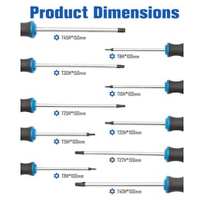 T8* 100 mm, T9* 100 mm, T10* 100 mm, T15* 100 mm, T20* 100 mm, T25* 150 mm, T27* 150 mm, T30* 150 mm, T40* 150 mm, T45* 150 mm