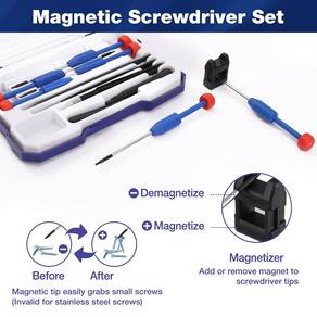 WORKPRO Conjunto de chaves de fenda Torx 12 em 1 com pontas Torx de segurança T3, T4, T5, T6, T8, T10, chaves de fenda magnéticas de precisão, pinças, barras de pressão - Conjunto de chaves de fenda Torx de precisão: este é um kit de ferramentas de reparo de chave de fenda torx multiuso que inclui chave de fenda Torx T3 T4 T5 e chave de fenda Torx T6H T8H T10H com uma cavidade nas pontas, 1 magnetizador, 2 pinças, 2 alavancas de plástico, 1 spudger de plástico, uma capa. O conjunto de chaves de fenda de precisão pode reparar vários produtos eletrônicos, como computadores, laptops, telefones, ps4, brinquedos, óculos, lâmpadas, pequenos eletrodomésticos, etc - Anticorrosão e antiferrugem: a chave de fenda torx de segurança é feita de aço cromo-vanádio tratado termicamente, que é mais forte e mais resistente do que a maioria dos aços de carbono, aumentando a durabilidade e prolongando a vida útil. A ponta de metal da chave de fenda é resistente à oxidação, corrosão e ferrugem e é extremamente durável - Cabeça magnética forte: a cabeça da chave de fenda torx tem forte força magnética, o que pode efetivamente melhorar a eficiência do trabalho. Segure os fixadores facilmente para começar a apertar e evitar que os fixadores caiam quando desparafusados. Com um desmagnetizador magnético, eles são magnetizados ou desmagnetizados instantaneamente - Alça antiderrapante: oferece o máximo de torque e conforto. A tampa da extremidade rotativa da chave de fenda magnética de precisão fornece pressão constante do dedo durante a condução, e a alça de borracha antiderrapante oferece máxima força de giro. Os tamanhos das chaves de fenda de precisão são marcados na tampa final para facilitar a identificação da chave de fenda correta para o trabalho - Capa com design exclusivo: o conjunto de chaves de fenda de precisão vem com um estojo de armazenamento para manter suas ferramentas organizadas e fáceis de transportar. A capa é bem projetada e tem um gancho deslizante na parte de trás, que pode ser pendurado em qualquer lugar conveniente. A capa também está equipada com uma trava deslizante, permitindo que você abra e feche a capa com segurança e rapidez. Há um compartimento fixo para cartão dentro da caixa de armazenamento, que permite que a chave de fenda seja colocada de maneira ordenada