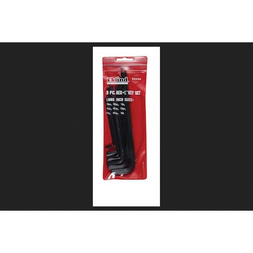 Conjunto de chaves hexagonais Eklind com 9 peças, 6 braços: 5/64, 3/32, 1/8, 5/32, 3/16, 7/32, 1/4, 5/16 e 3/8 Black Finish Peggable Pouch Discovery Hwu Price está listado para uma quantidade com desconto de 6 unidades por caixa.