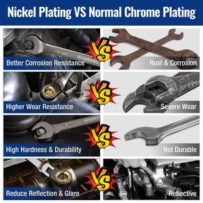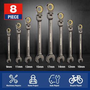 WORKPRO Conjunto de chaves de catraca de cabeça flexível de 8 peças, métrico de 9 a 17 mm, 72 dentes, construção Cr-V, revestimento de níquel com bolsa organizadora - Nossas chaves catraca são feitas de liga CR-V tratada termicamente de alta qualidade e niqueladas para maior durabilidade - A cabeça da extremidade da caixa é usinada com precisão para encaixar firmemente nos fixadores. As chaves catraca também podem ser giradas 180 graus para acessar espaços apertados - A engrenagem de catraca de 72 dentes dentro da extremidade da caixa requer apenas um arco de giro de 5 graus, permitindo uma operação fácil e rápida - Este conjunto de chaves de catraca inclui 8 chaves que cobrem tamanhos de 9 mm, 10 mm, 11 mm, 12 mm, 13 mm, 14 mm, 15 mm, 17 mm, satisfazendo a maioria das suas necessidades - Uma adição essencial à sua caixa de ferramentas