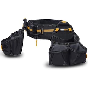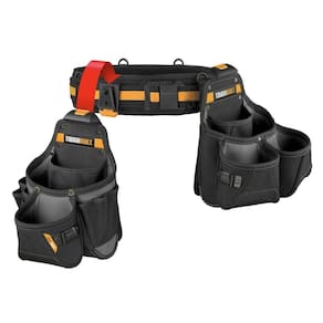 Os porta-ferramentas possuem suporte integrado, garantindo estabilidade em superfícies planas como chão ou mesas. Com 27 bolsos e laços, incluindo 5 de grande capacidade com costura oculta, um bolso para caderno, porta-martelo de metal e 2 clipes para trena, o conjunto oferece ampla organização. Feito com construção reforçada de 6 camadas, rebites premium e uma fivela resistente.