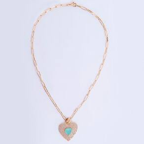 Conjunto de Colar de Brincos Coração Esmeralda Colombiana -