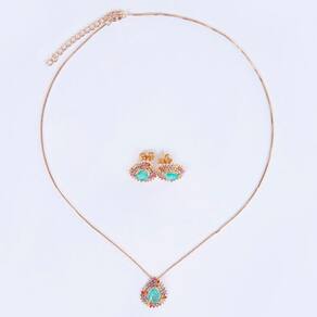 Conjunto de Colar e Brincos com Pedra Fusion Tamanho 40cm -
