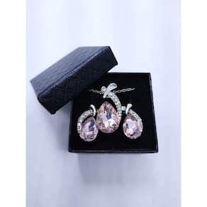 Lindo conjunto de colar e brincos, perfeito para qualquer ocasião, com a elegância da beleza feminina. Detalhes: Material liga de Zinco de excelente qualidade. Com pedras Zircônia colorida e Strass de brilho intenso. Tamanho do pingente: 3 cm X 1,5 cm Tamanho da corrente: 40 cm + 5 cm Tamanho do Brinco: 2,5 cm X 1,5 cm Conteúdo da embalagem: 1 colar de zircônia com strass, 1 corrente, 2 brincos com pedra de zircônia e strass e 1 caixa para manter as peças protegidas. Uma peça de excelente qualidade, delicada, sofisticada e moderna. As bijuterias finas são, com excelente qualidade. Com tempo de uso, existem fatores que aceleram o processo desgaste: suor, contato com produtos químicos produtos de limpeza e cosméticos , cloro de piscina, água do mar, sabonete, entre outros produtos que podem agredir o banho da peça, fazendo com que ela volte à cor do Aço. Peças devem ser limpas apenas com uma flanelinha, de maneira leve. Seguindo estas dicas você terá sua peça por mais tempo. Ideal para ser Utilizado em ocasiões especiais. Uma ótima opção para presentear alguém especial. Marca: Amor Lindo