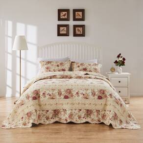 Greenland Home Conjunto de colcha com qualidade de relíquia de 100% algodão rosa antigo, 3 peças King, cru