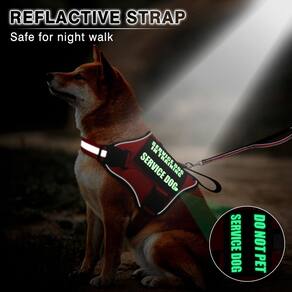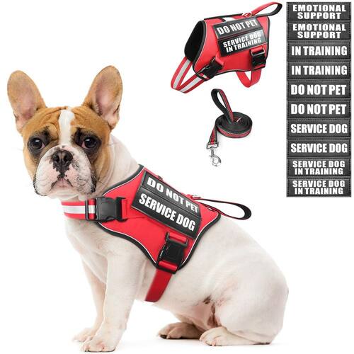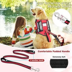 O pacote vem com um arnês para cães de serviço, uma coleira para cães de 1,5 m com 2 alças acolchoadas macias,