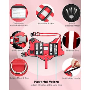 - Conteúdo da embalagem: ?O pacote vem com um peitoral para cães de serviço, uma coleira para cães de 1,5 m com 2 alças acolchoadas macias, 1 cartão de nome, 10 adesivos brilhantes de fecho aderente para cães (que brilham no escuro) como "NÃO ANIMAL DE ESTIMAÇÃO", "EM TREINAMENTO", "SERVIÇO DOG IN TRAINING", "SERVICE DOG IN TRAINING", "Service Dog" e "EMOTIONAL SUPPORT". Você pode preencher as informações do seu cão no cartão e colar 4 adesivos de cada vez para expressar a personalidade, o humor do seu cão ou para exibir informações úteis em seu arnês.