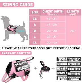 O pacote vem com um arnês para cães de serviço, uma coleira para cães de 1,5 m com 2 alças acolchoadas macias,