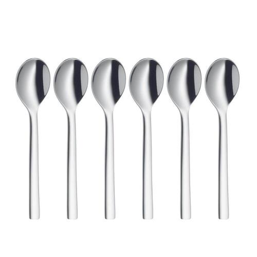 Conjunto De Colheres 6 Peças Para Café Nuova Em Aço Inox Wmf Sua mesa de café da manhã ficará muito mais elegante e charmosa com este incrível conjunto de colheres para café. Diversifique e inove na hora de servir com os acessórios perfeitos da Alemã WMF. A linha Nuova apresenta um novo conceito em talheres sofisticados para diversas ocasiões graças ao design atraente e atemporal. Cada utensílio é fabricado em aço inox Cromargan, material exclusivo da marca que confere alta resistência e brilho intenso e durável, mesmo após o uso prolongado.Ficha técnica:- Código: 4080011355- Marca: WMF- Modelo: Nuova- Conteúdo da Embalagem: 6 Colheres - Material: Aço Inox- Peso: 150g- Dimensões: 10x2x2cm (AxLxP)- Garantia: 1 Ano