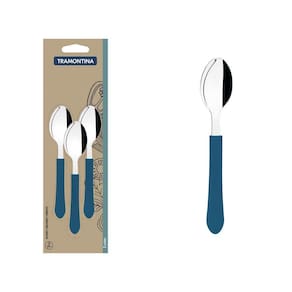 Conjunto De Colheres De Cha Tramontina Leme Com Laminas Em Aço Inox E Cabos De Polipropileno Azul Oceano 3 Peças Conjunto de Colheres de Chá Tramontina Leme com Lâminas em Aço Inox e Cabos de Polipropileno Azul Oceano 3 peças Maçã, abacaxi ou frutas vermelhas, independente do seu sabor preferido, o Conjunto de Colheres de Chá Tramontina Leme com Lâminas em Aço Inox e Cabos de Polipropileno Azul Oceano 3 peças deve ser a companhia perfeita! As peças que o compõem tem lâminas produzidas em aço inox e contam com cabo em polipropileno, características que as tornam resistentes, duráveis e indispensáveis para sua cozinha. Elas vêm na azul e deixam esse momento ainda mais cheio de estilo e especial. São ainda muito fáceis de limpar e podem ser lavadas na máquina de lavar louças, otimizando sua rotina na cozinha!