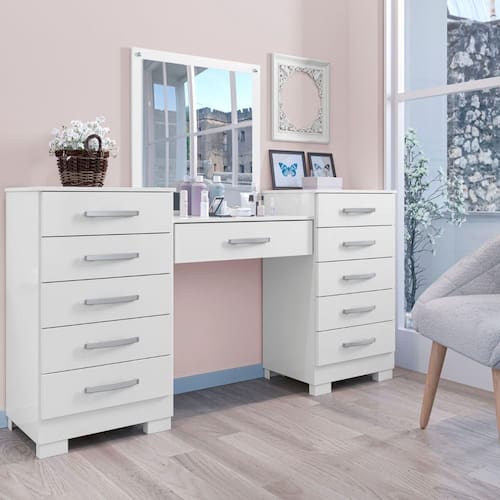 O Conjunto de Penteadeira e Cômoda veio para facilitar na hora da sua organização do seu ambiente, é um conjunto perfeito para você que gosta de praticidade na hora de se arrumar.