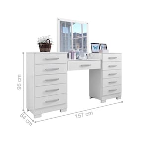 A penteadeira é feita em MDP 15mm.Possui 1 gaveta com corrediças telescópica e acompanha espelho.