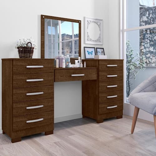 O Conjunto de Penteadeira e Cômoda veio para facilitar na hora da sua organização do seu ambiente, é um conjunto perfeito para você que gosta de praticidade na hora de se arrumar.