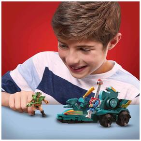 Entre na batalha com o icônico e heróico Battle Ram, um conjunto de construção colecionável que apresenta um veículo de ataque com rodas giratórias, aríete e lançador de mísseis, além de duas microfiguras de ação, TriKlops e Mekaneck. O Battle Ram pode ser separado em dois veículos diferentes, o Sky Sled e um lançador móvel, tornando se uma ameaça dupla em batalha. As microfiguras apresentam detalhes autênticos, 12 pontos de articulação, extensores de pescoço para Mekaneck e acessórios de espada e maça intercambiáveis. Este conjunto de construção é ideal para Probuilders a partir de 8 anos e apresenta tijolos compatíveis com todos os brinquedos de construção Mega Construx e outras marcas. Fortaleça suas habilidades de pensamento criativo com a autenticidade detalhada deste conjunto de construção.