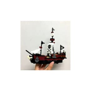 Instruções de construção detalhadas e coloridas: O conjunto de blocos de construção do Pirate Ship com instruções em papel para montagem conveniente pode ser reproduzido ou utilizado para exibição. Ao construir esses blocos, você pode se divertir sem ficar entediado. A melhor ideia de presente: o kit de construção do navio pirata é um presente perfeito para festas de aniversário, Natal, feriados, etc. Esses blocos de construção proporcionam uma diversão de jogo mais criativa e exploratória. Depois de montar um bom modelo de construção, também é um ótimo ornamento para decoração de casa. Atenção: como as partículas são pequenas, mantenha-as corretamente.